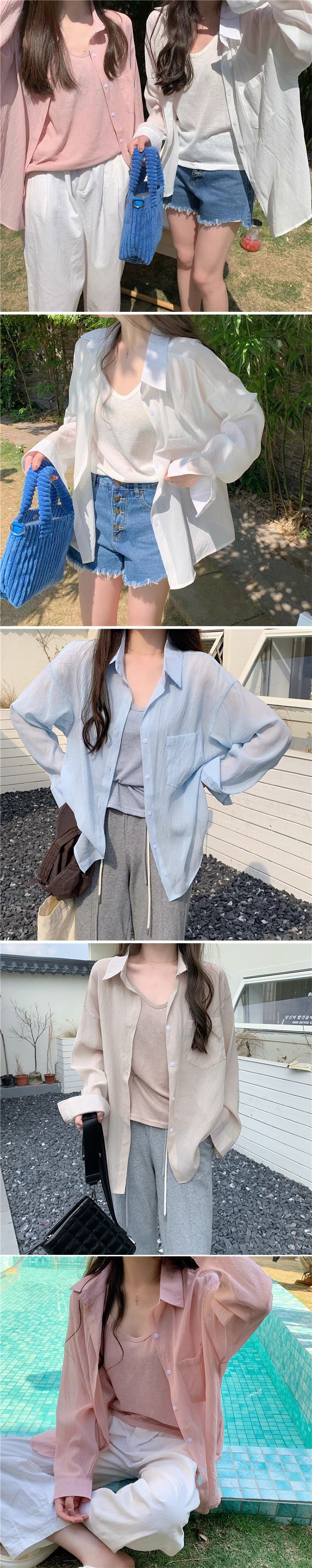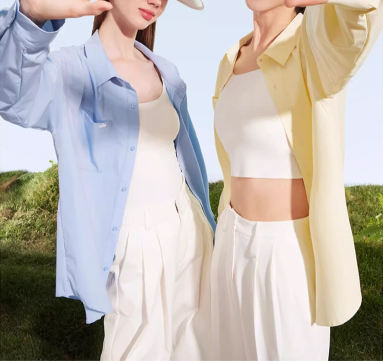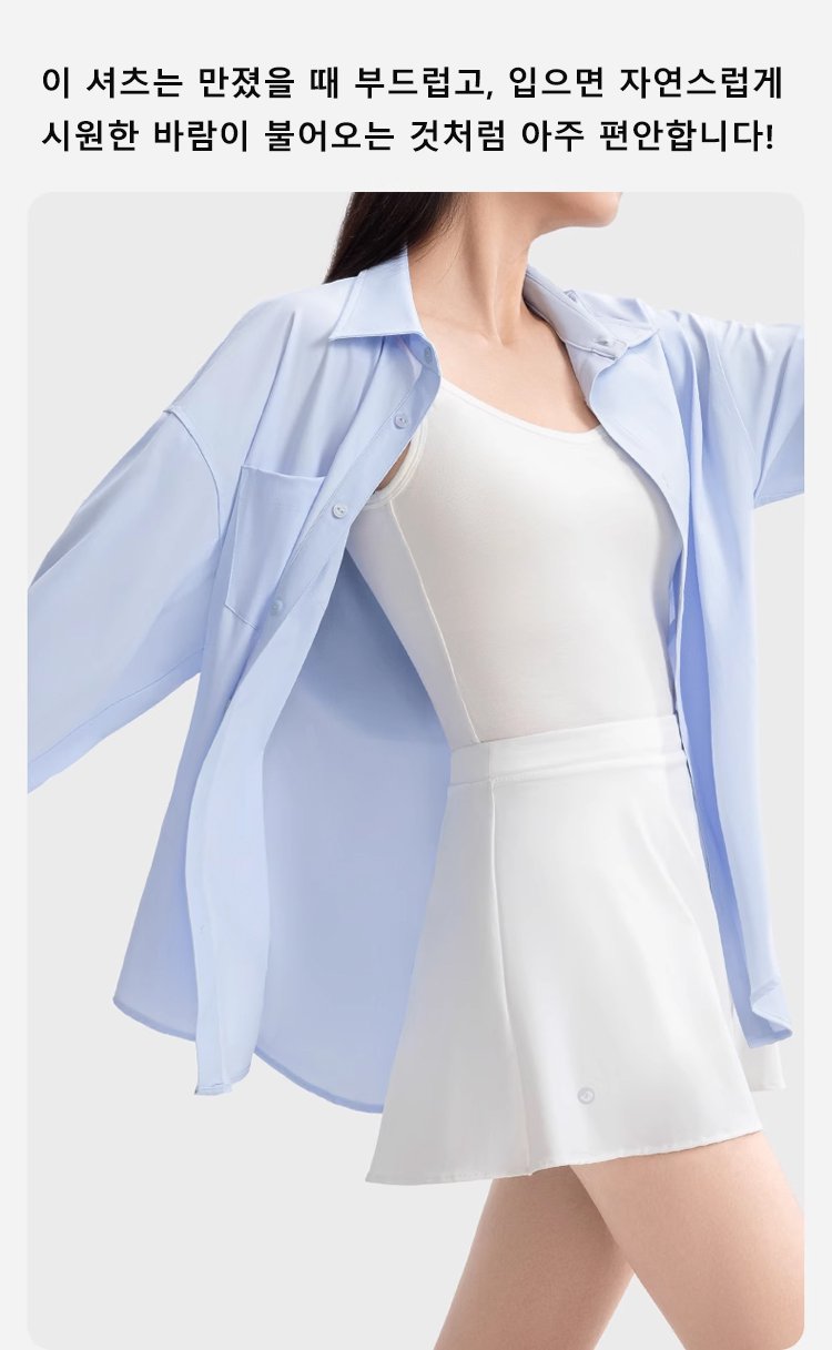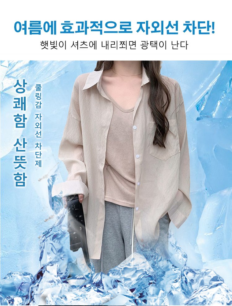 【시원하고 구김 없는】아이스 실크 드레이프 여성 자외선 차단 셔츠