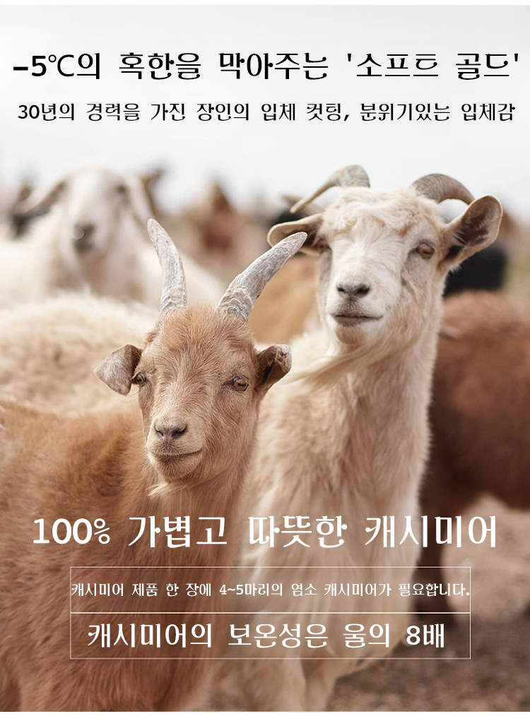 100% 고급 캐시미어 보온 안감, 안감 두께 600g,영하 30도의 혹한에도 춥지 않습니다