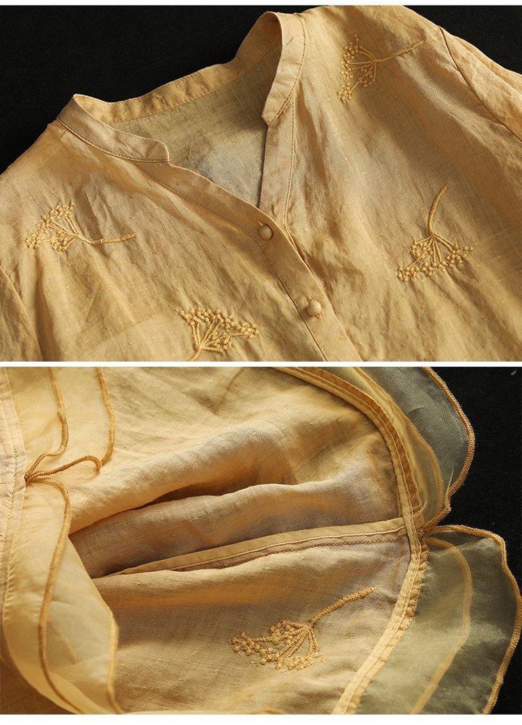자수와 패치가 장식된 여성용 셔츠 소매 디테일