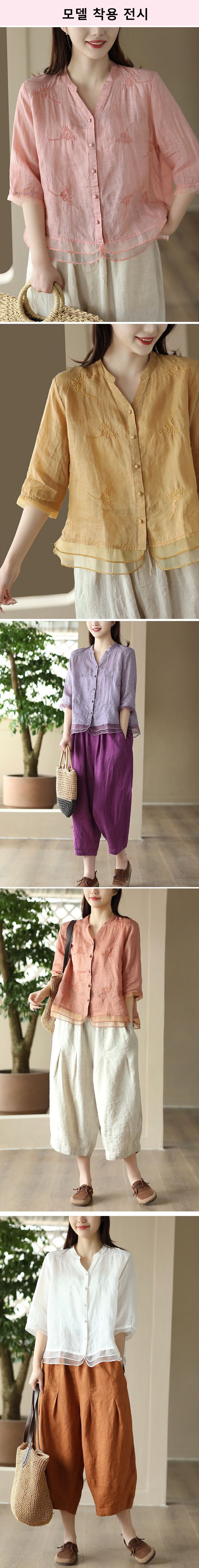 여성 캐주얼룩에 매치한 면 마 셔츠 코디