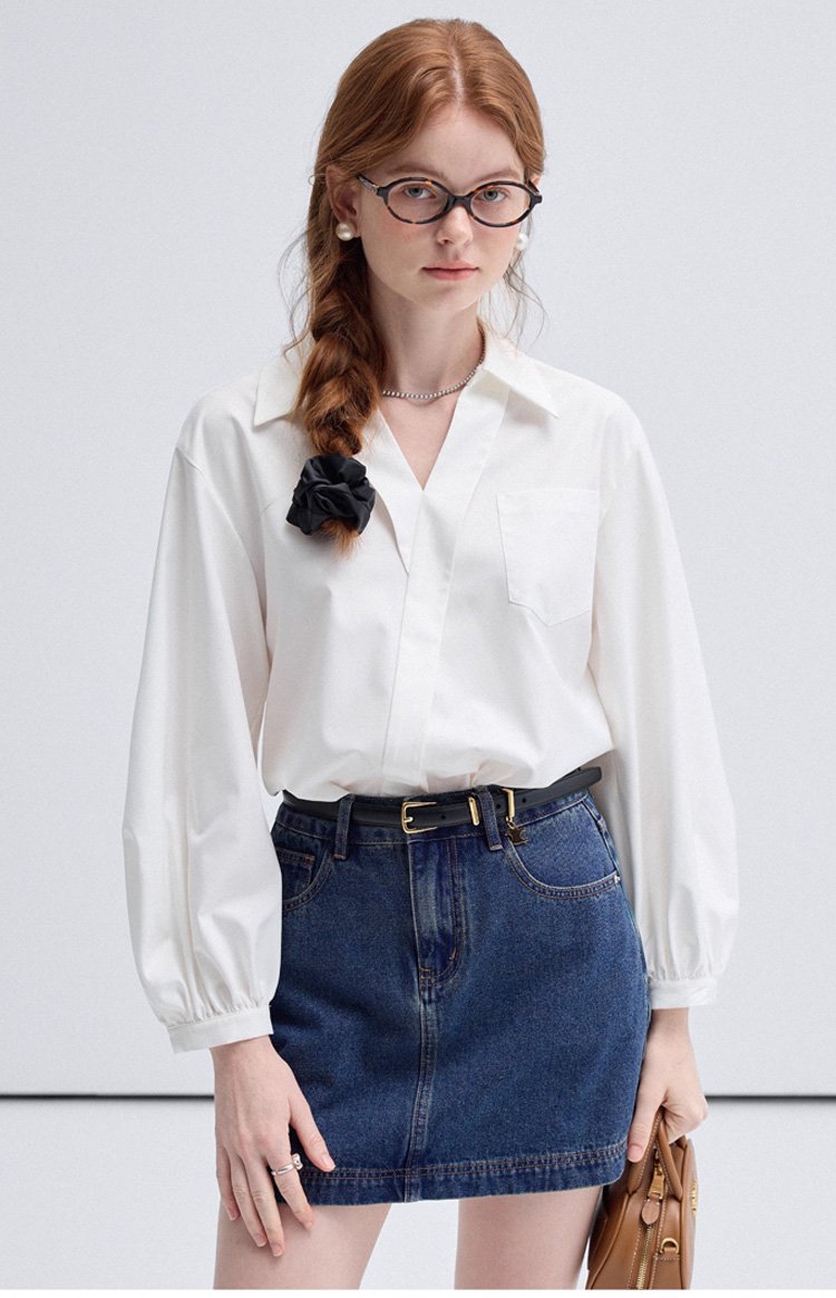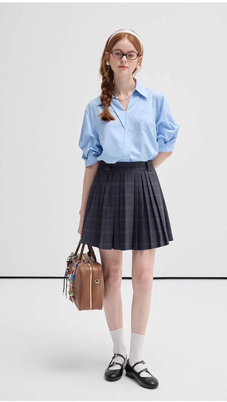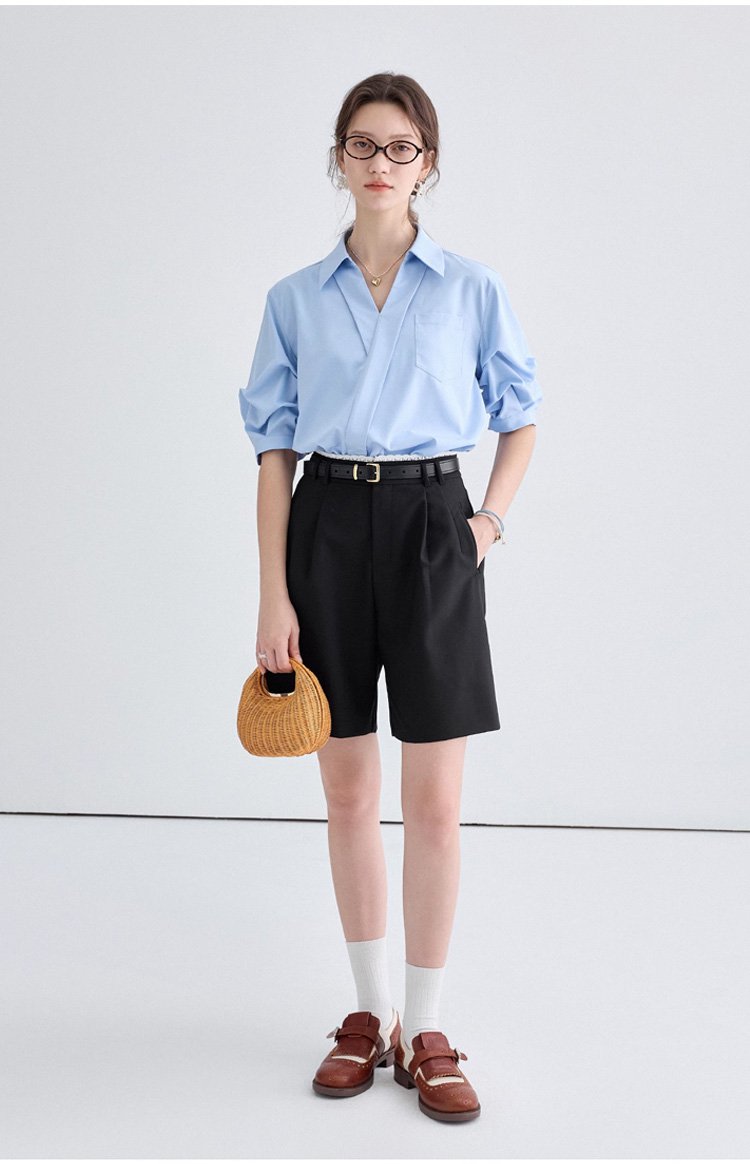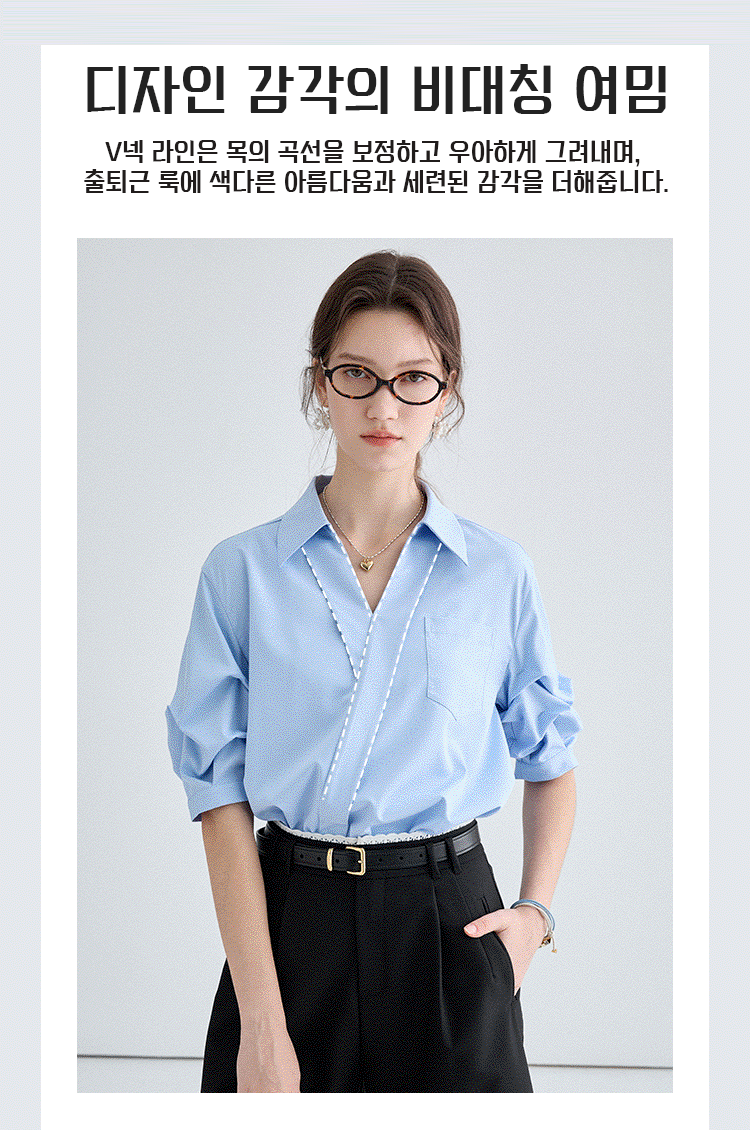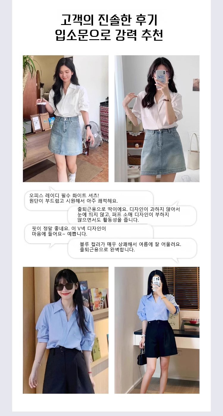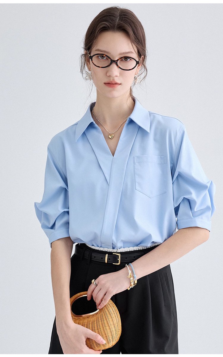 여성용 V넥 반소매 셔츠