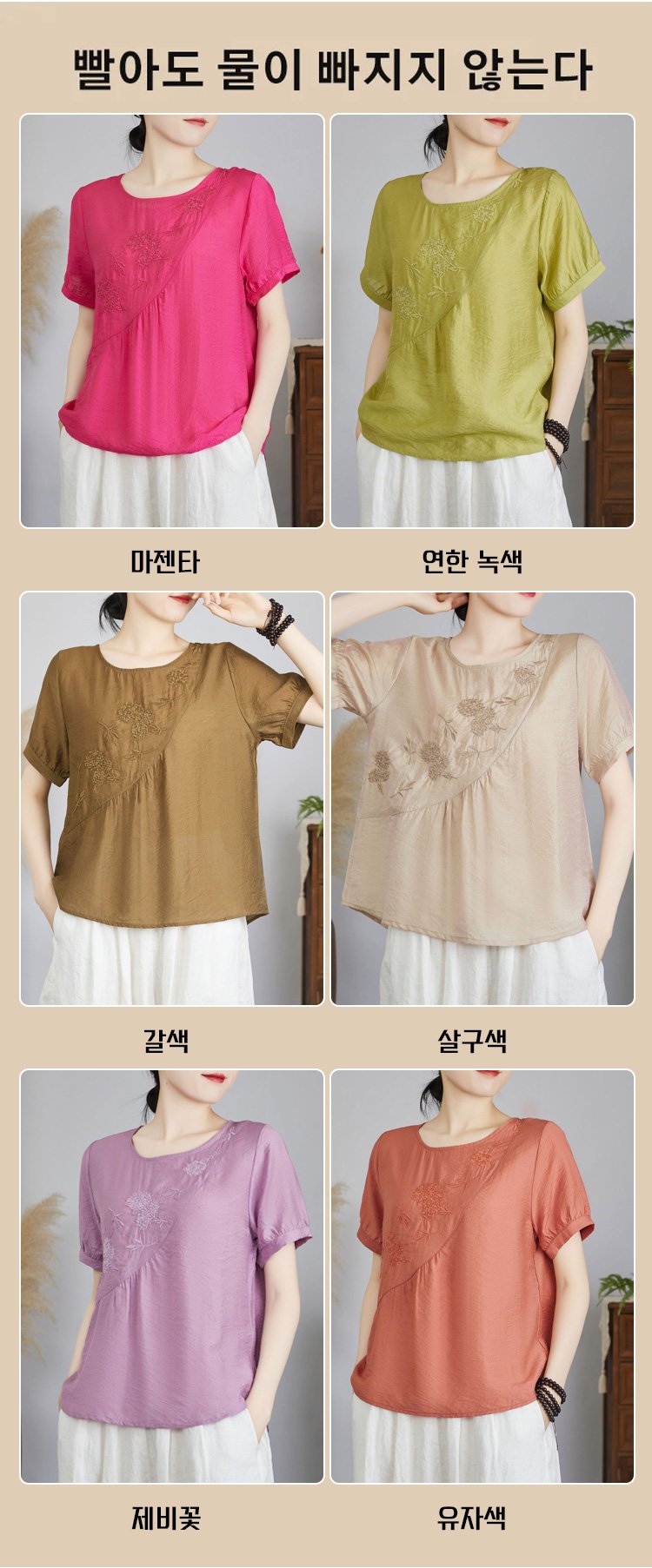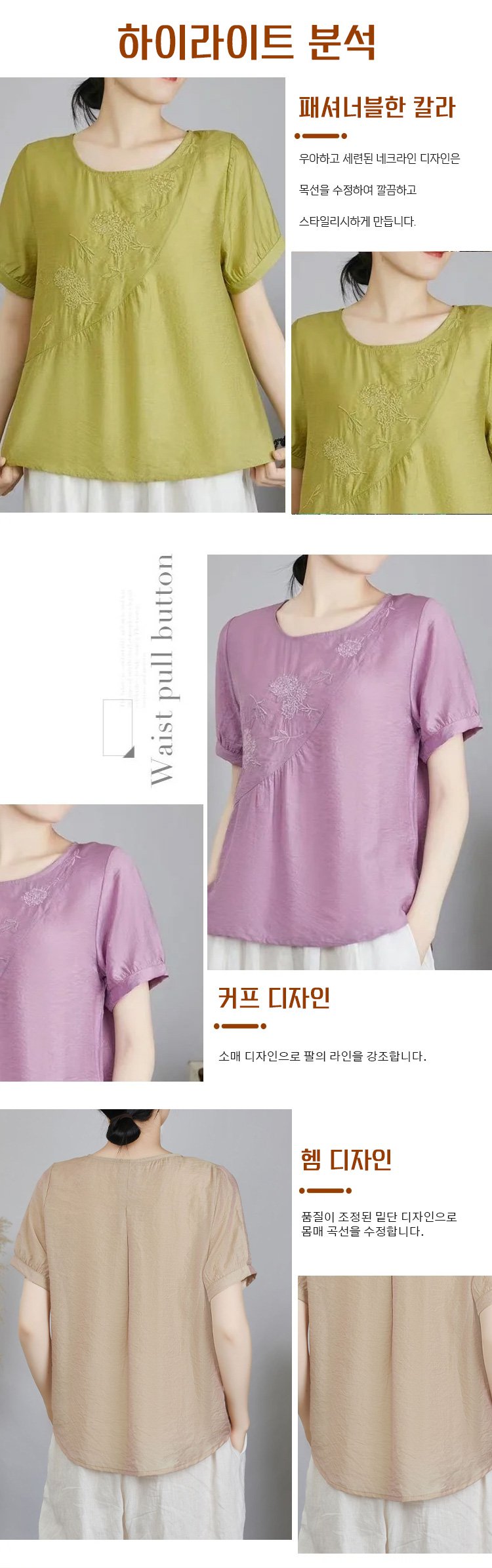 모던한 솔리드 컬러 탑의 자수 포인트
