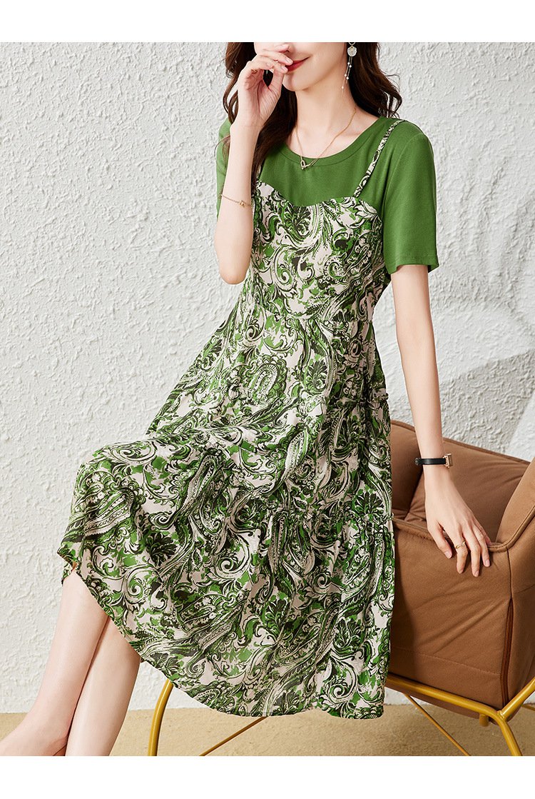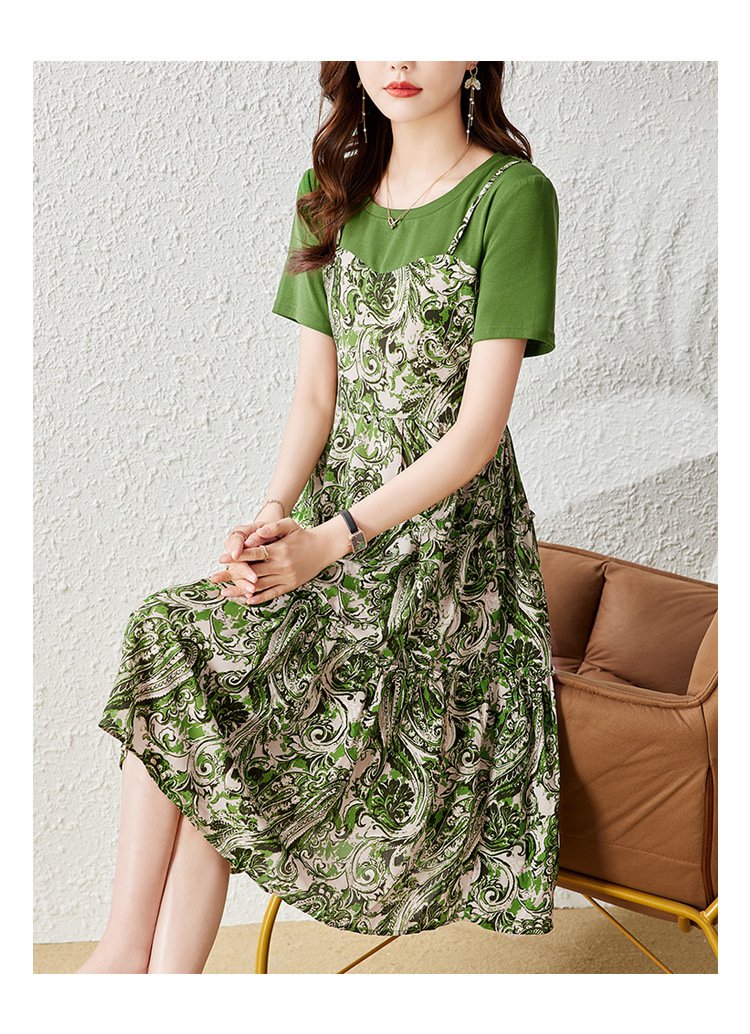 페이크 레이어드 프린트 원피스